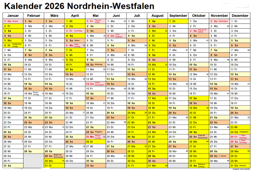 zur Orientierung der Ferienkalender 2026 für NRW.