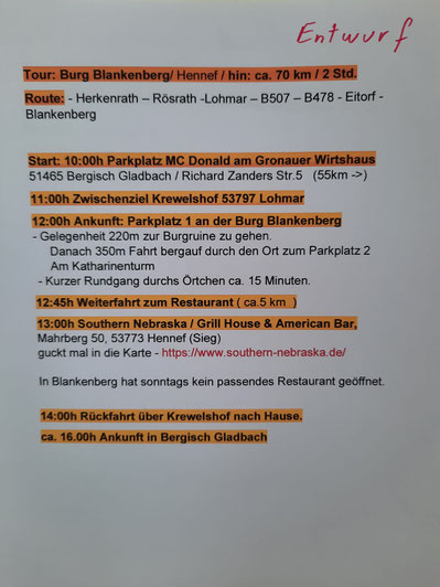 TOURENPLAN SONNTAGSTOUR