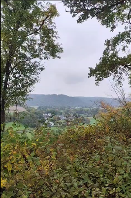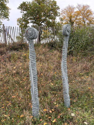 Kein Wunder. Es gibt auch nicht sehr viel mehr. Ein bißchen vergessene Kunst im Gebüsch, aber dafür viel Aussicht übers Siegtal bis zur Siegburger Abtei auf ihrem Bergkegel.
