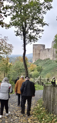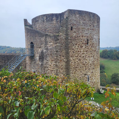 Von Lohmar geht es zügig über die buntbelaubten bergischen Hügel, bis wir das Siegtal erreichen. Aber auch dort bleiben wir nicht lange an der Talsohle, denn hinter Bülgenauel geht es bergan. Oben auf thront die Burg Blankenberg. Das haben Burgen vielfach so an sich, oben hoch auf einem Berg zu sitzen. Diese hier macht keine Ausnahme.